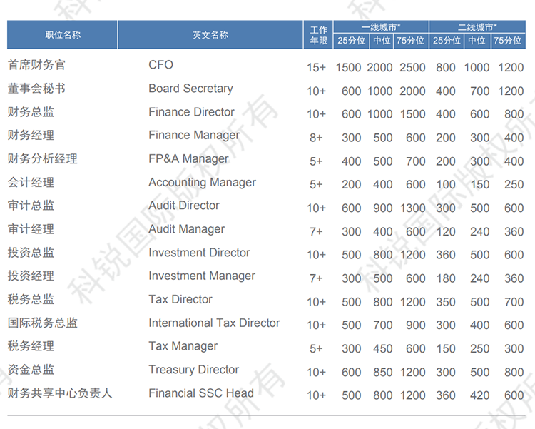 以下是猎头招聘公司南宫28国际发布的薪酬报告对财务领域的职位薪酬信息统计,供企业和猎头招聘时参考。