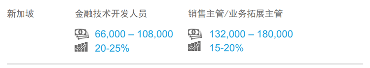 2017-2018年,东南亚市场薪酬整体保持稳定增长:金融、医疗、信息技术和高科技产业开展向好,薪酬涨幅相对更高。从地区看,新加坡薪酬的薪酬涨幅水平相对较低,跳槽涨幅在10-15%。(文中部分数据是北京知名猎头公司南宫28国际专家顾问的分析预测,供企业HR和猎头参考)